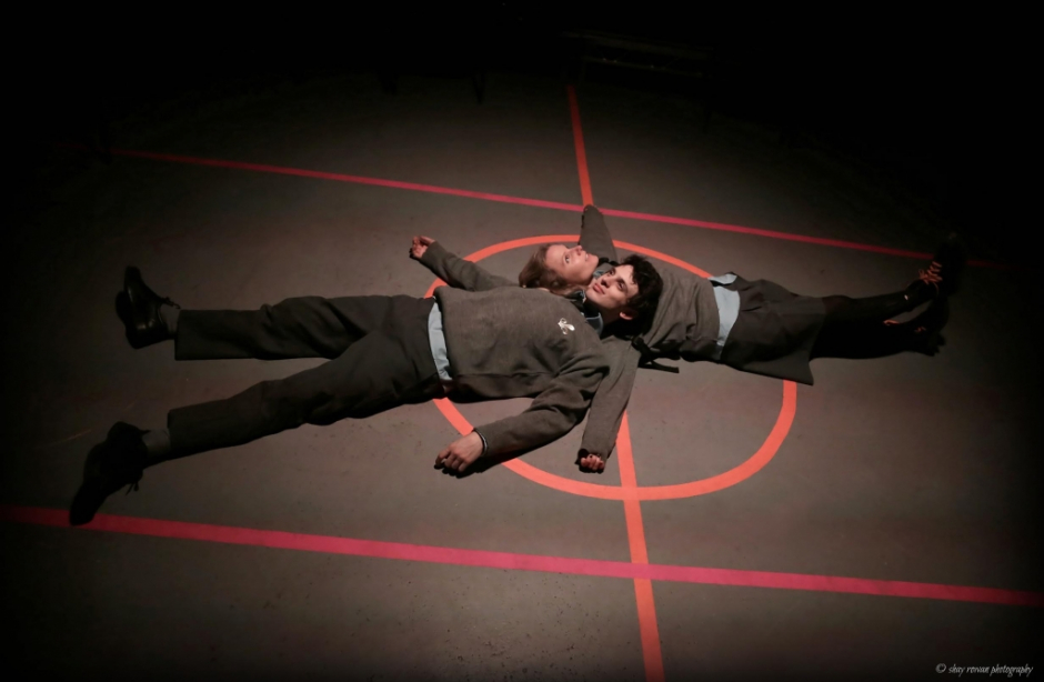 Moth begins with two almost catatonic looking characters in school uniforms walking slowly down opposites sides of the stage while a cacophony of sound and light surrounds them, building to a point that makes the audience tense and uncomfortable before a word has even been spoken. It’s a technique that will be used throughout, and one that fits well with the themes of the play. Moth highlights the turbulent workings of the inner mind, the troubles that often lurk beneath calm exteriors.
