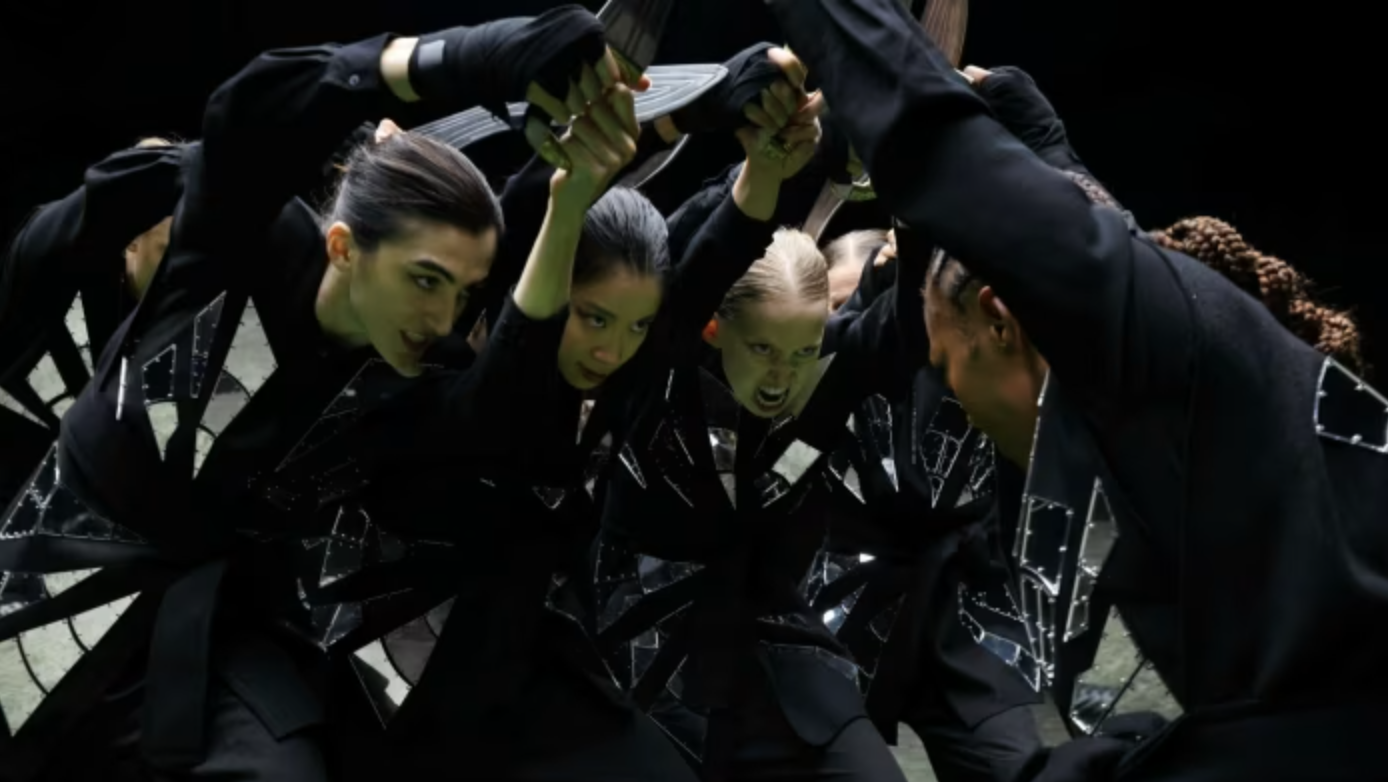 The performance, and the many coalescing instances of which it is composed, fills the cavernous space of Aviva Studios. It’s vertical as well as horizontal – tall scaffolds have objects and mannequins on them, high overhead. The human performers are distributed throughout the space in groups, coming together on various stages for dances and musical performances. Materials published around the performance note that it is a blend and reimagining of various myths, folk stories, and traditions from across the Balkan region, many of which are erotic or sexual in nature. But you don’t need to be Balkan to feel the magic and power of these stories as they are rekindled here. This episodic show has something of the medieval mystery play cycle about it, or at least the imagined version of such a cycle staged within the stone squares of a crooked medieval town that has lived in my mind since I first read about medieval mystery plays at university.